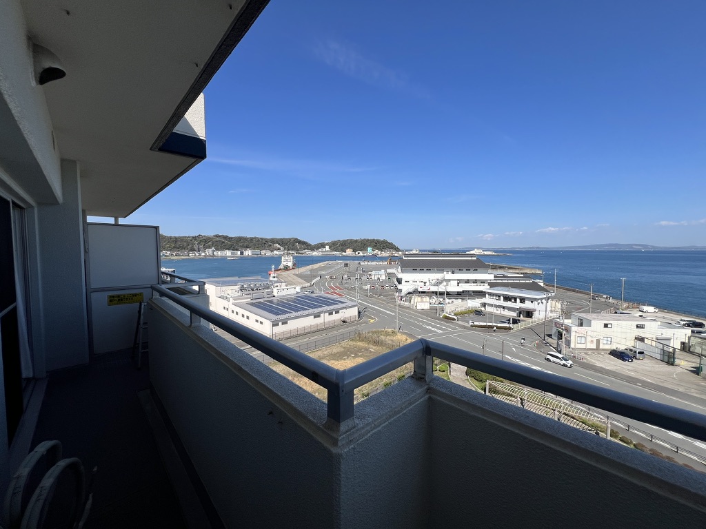 横須賀市久里浜8丁目の海沿いに佇む「ラブリハイツ久里浜」より、8階部分の開放感あふれる住戸が登場しました。一番の魅力は、バルコニーの先に広がる青い海を室内から望める贅沢なロケーションです。潮風を感じながら、移り変わる海の表情を日常の一部として愉しめるのは、この立地ならではの醍醐味といえるでしょう。