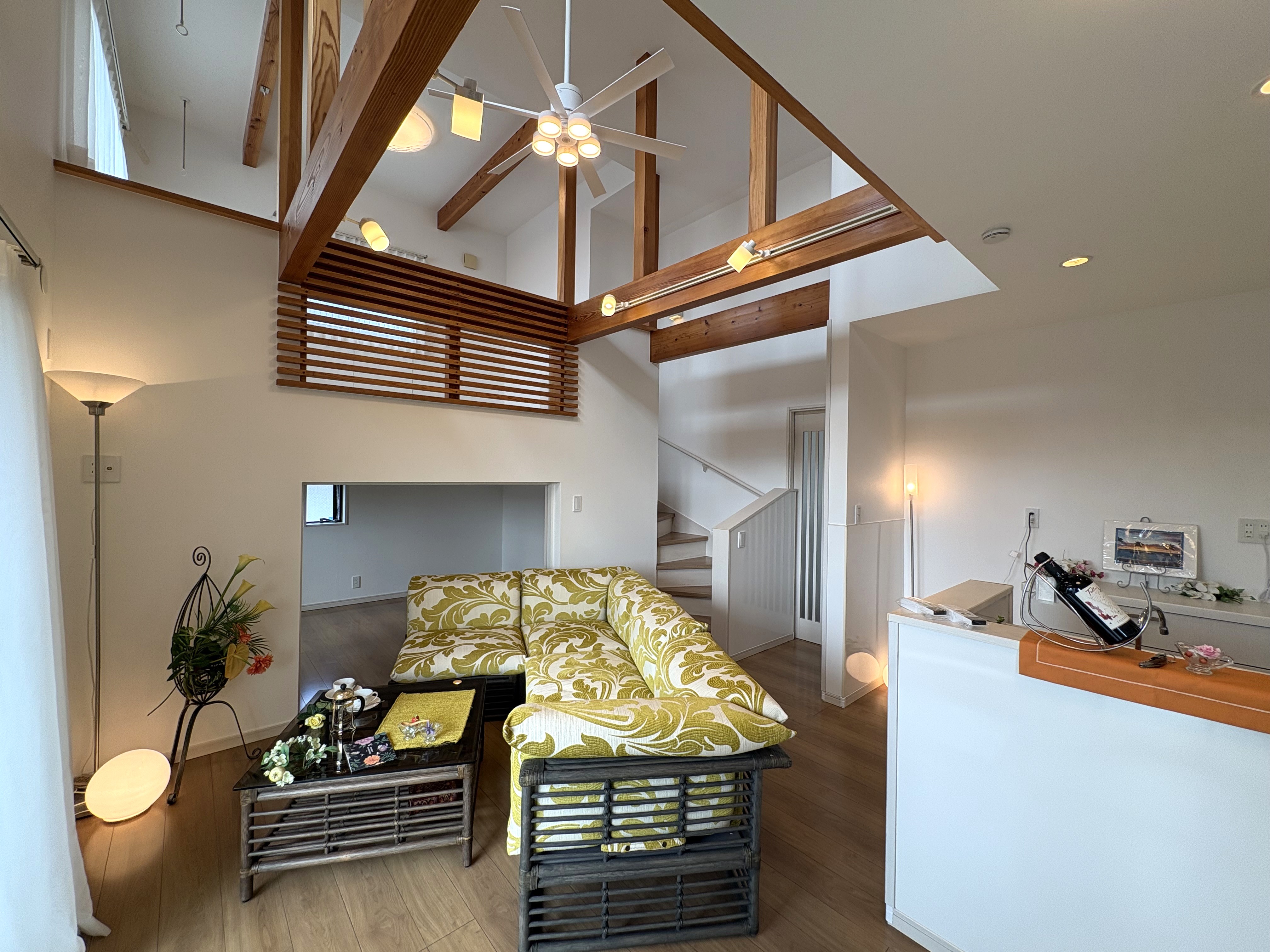 2階のLDKは開放感のある天井吹き抜け、スキップフロア等こだわりの詰まった設計です。