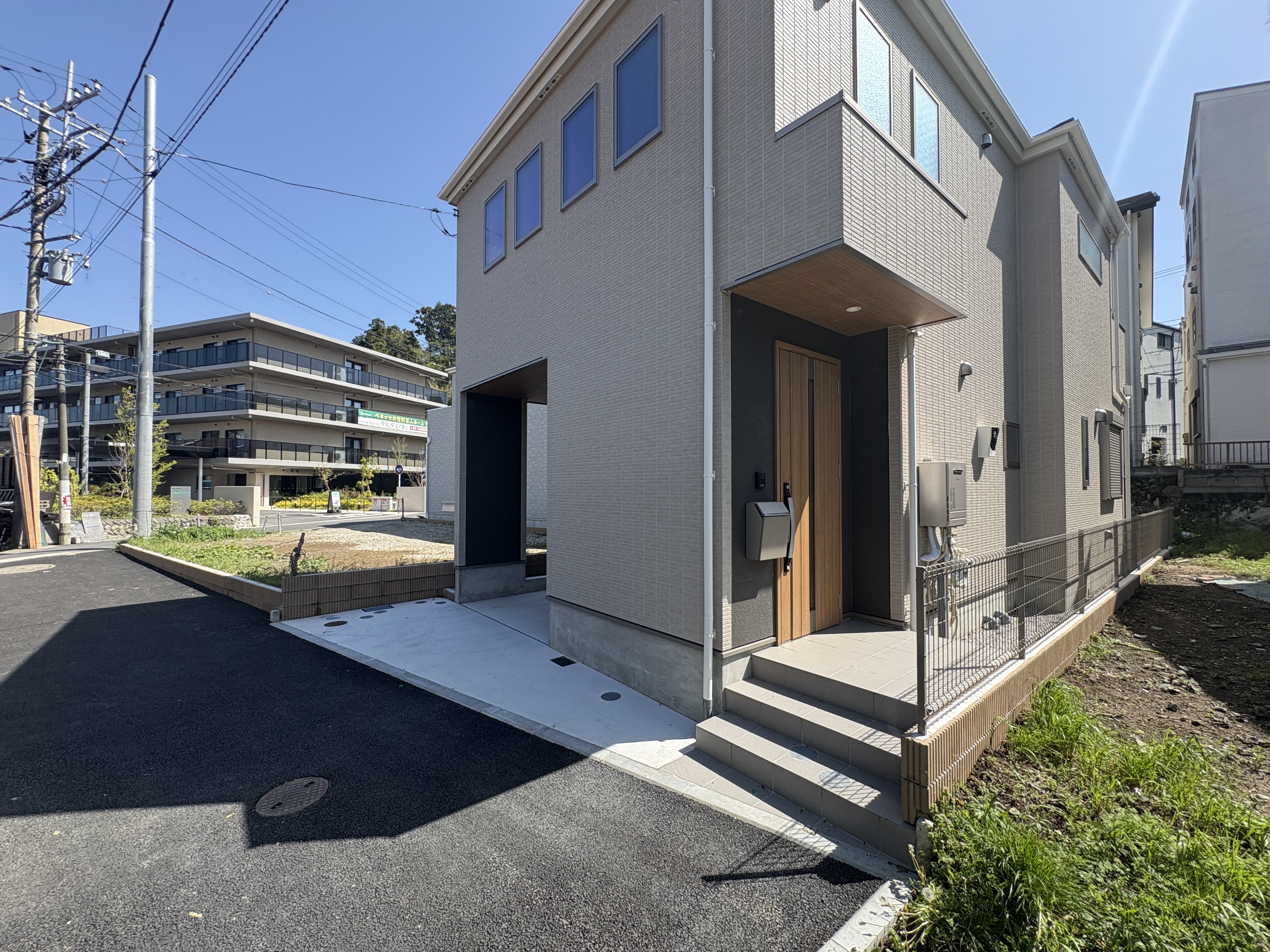 JR横須賀線「東逗子」駅徒歩5分にガレージ付きの新築が登場です♪写真の通り室内外はお洒落に設計されており、スタイリッシュな設えになっています♪