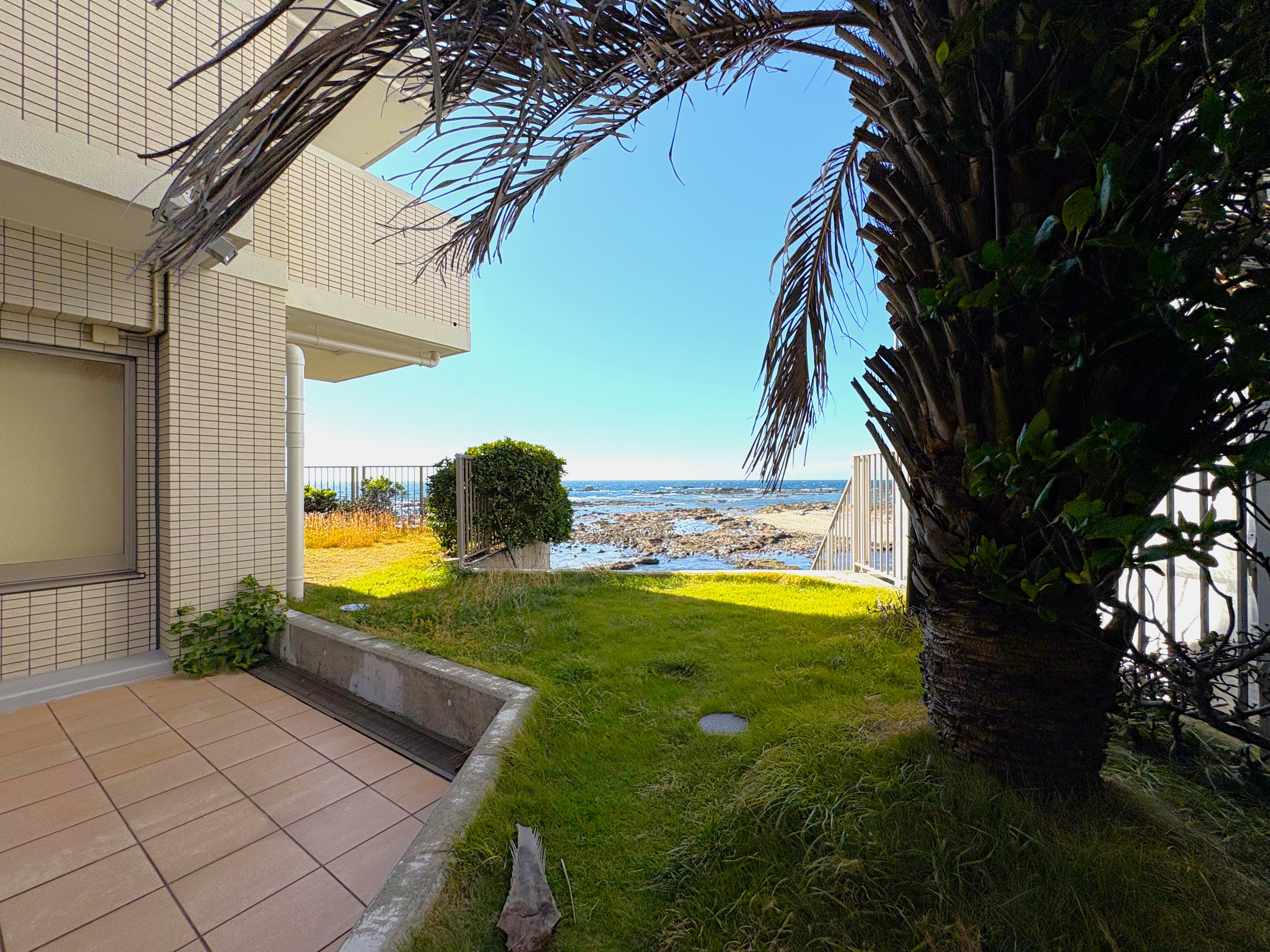 この度ご紹介いたしますのは、道路を挟んで「葉山芝崎海岸」の目の前に位置するマンションの一室です。