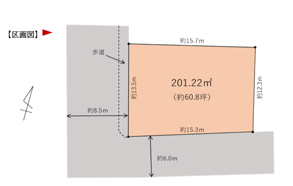 | 土地面積 | 201.22m² (60.86坪) 間取り・区画図を取り寄せる | 権利形態 | 所有権 |