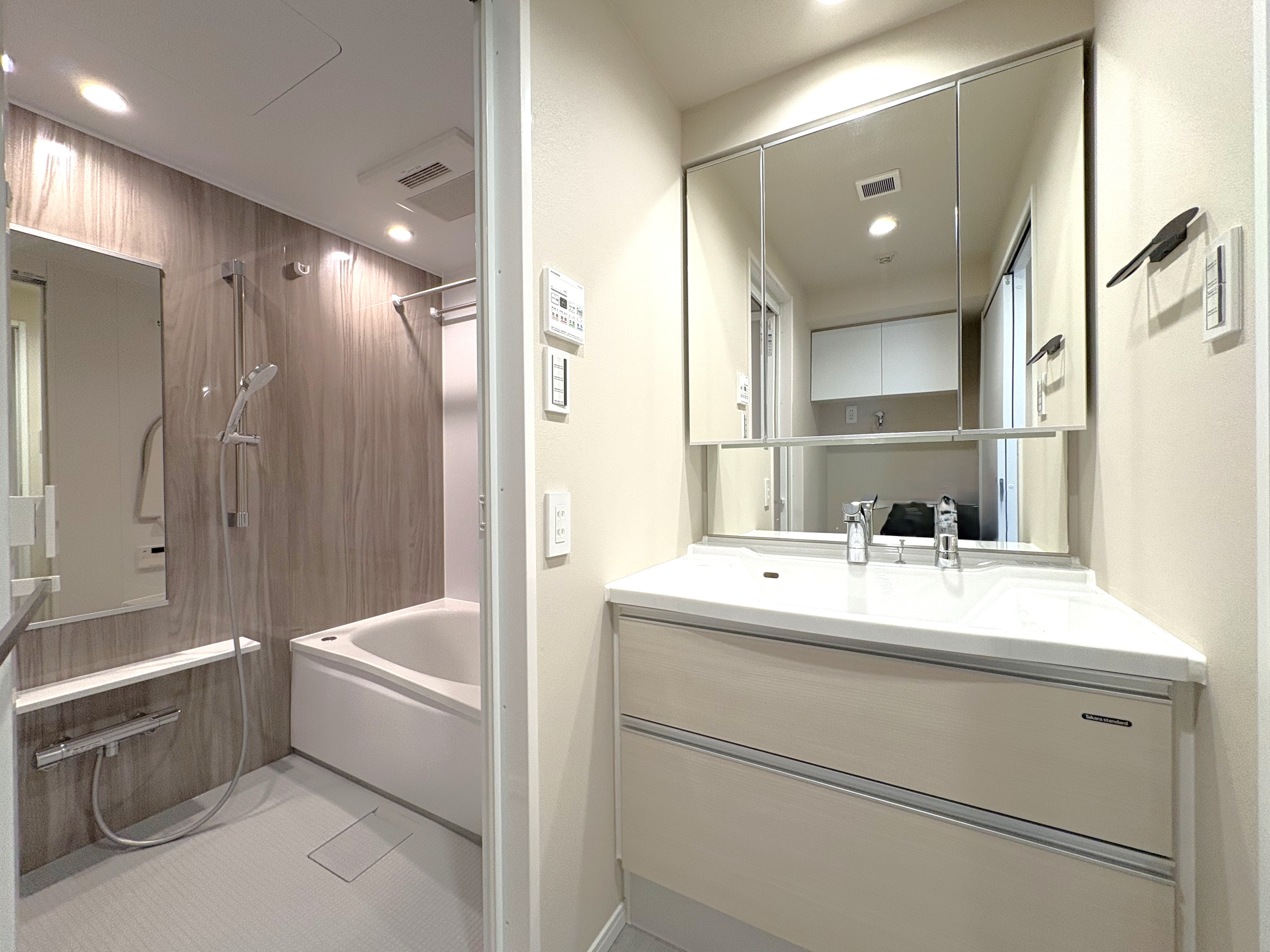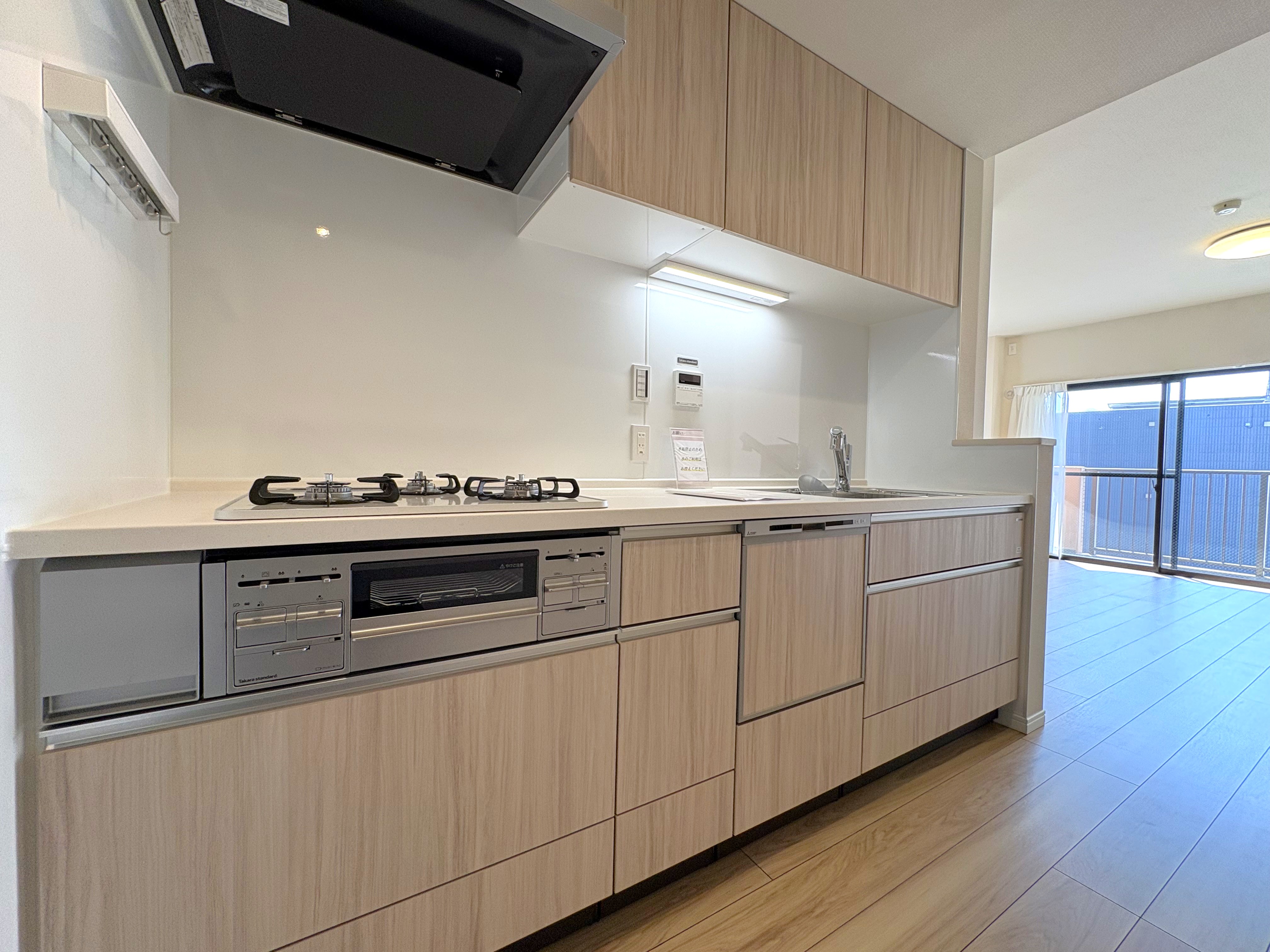 約11.5帖のリビングダイニングを中心に、食洗機付きのキッチンや追い焚き機能備えたバスルームなど、水回り設備も一新されました。