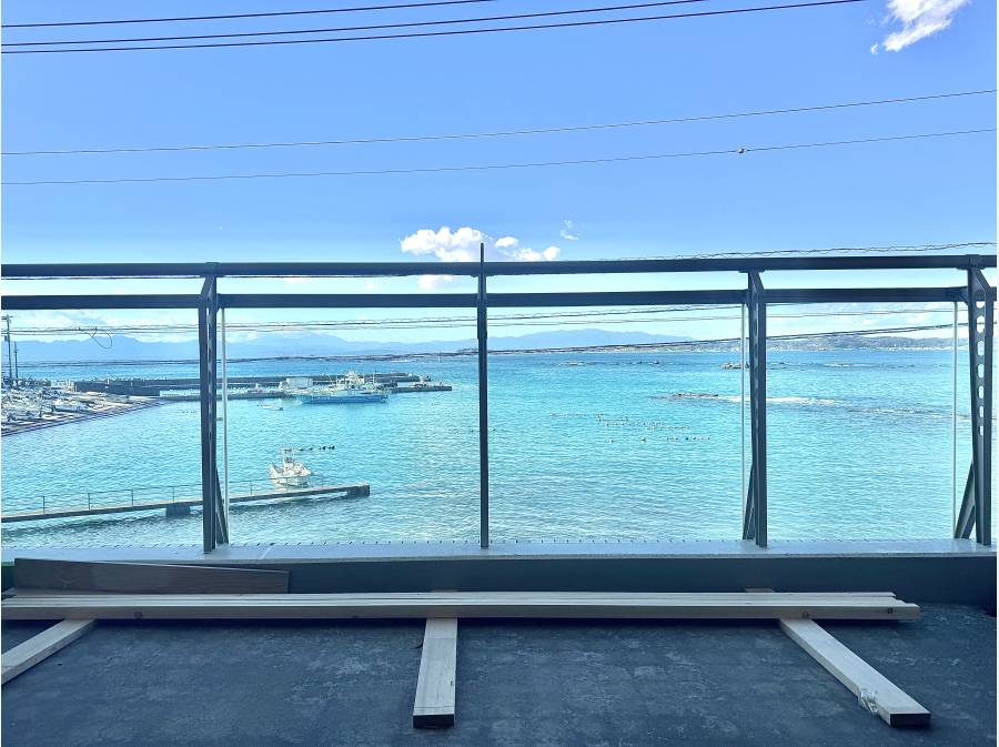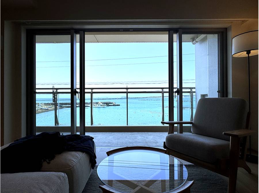 本物件の魅力は、窓一面に切り取られた「蒼い海と空の借景」です。