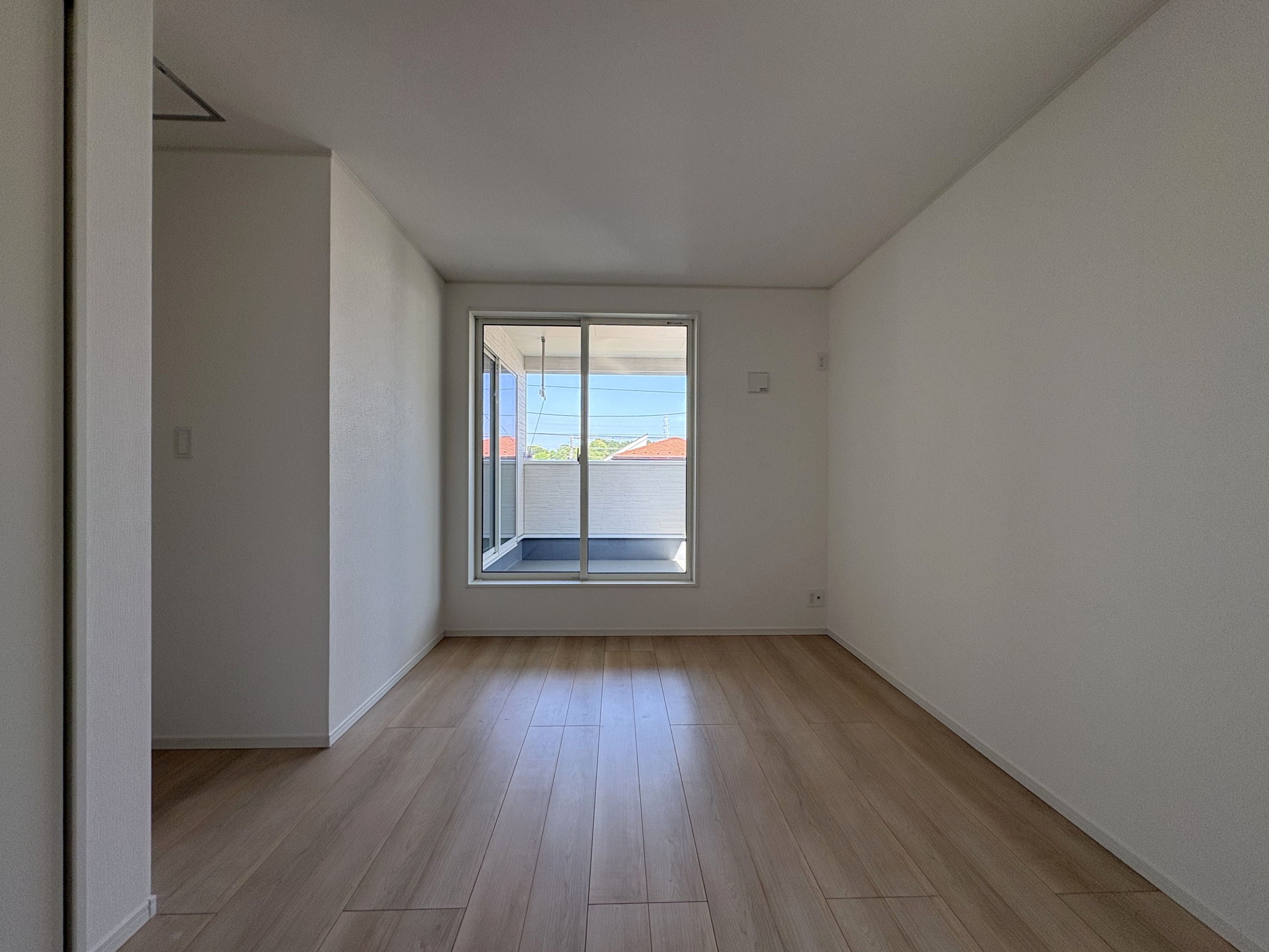 2階の洋室からアクセスできる7.29㎡のルーフバルコニーは、洗濯物を干すだけでなく、ちょっとしたリフレッシュスペースとしても最適で 。