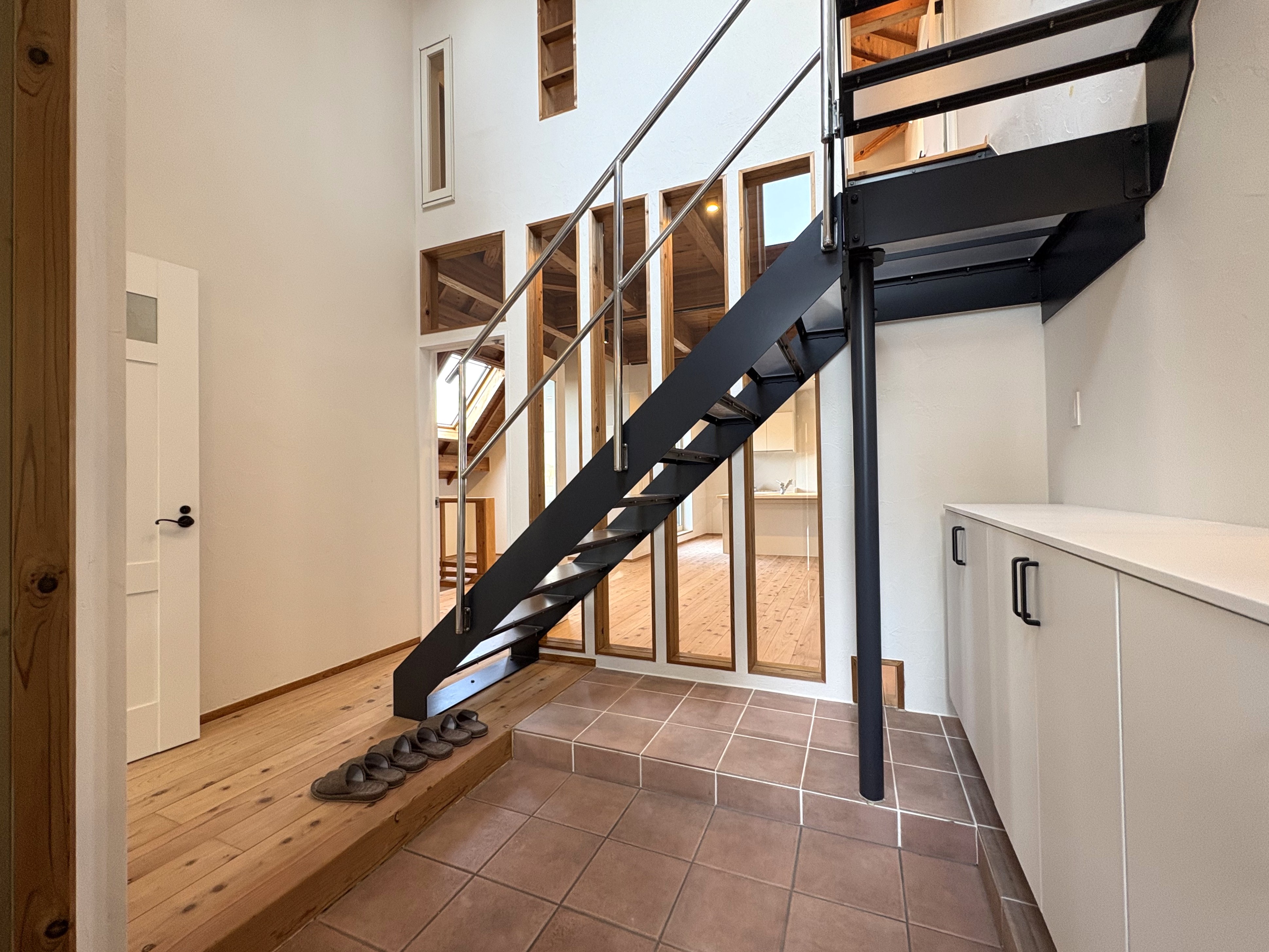 玄関のドアを開けると、目の前には素敵なアイアン階段。